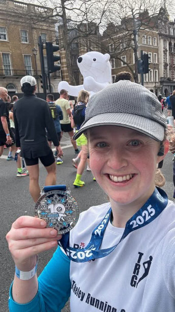 Steph completes her 1st Marathon, the London Marathon April 2025 on an extremely hot day in approx. 4 hours 30 mins.