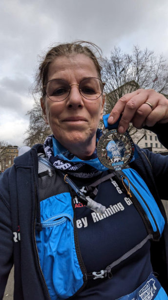 Sue completes the London Winter 10km Feb 24 after following a Personal Training Plan.